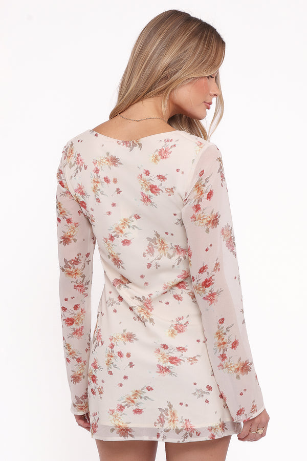 Bring timeless elegance to your wardrobe with the Everlyn Long Sleeve Mini Dress in Cream Floral. This mini dress features a delicately draped cowl neckline and long sleeves, striking the perfect balance between chic and sophisticated.